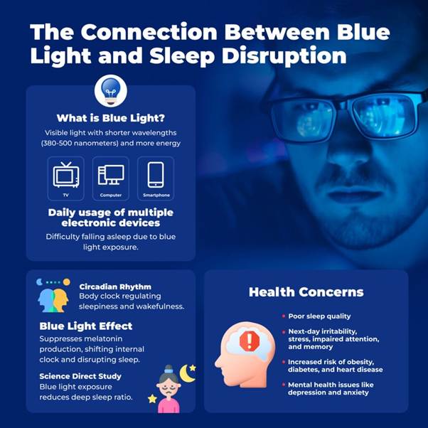 Screens emit blue light that disrupts the sleep hormone melatonin.