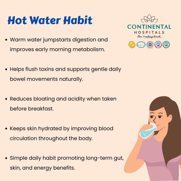 - Drink 1–2 glasses of warm water