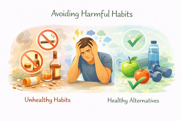 A healthy lifestyle also means reducing or avoiding behaviors that harm your body and mind, such as: