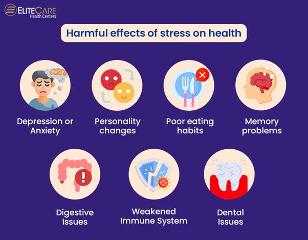 क्रॉनिक तनाव सूजन बढ़ाता है और कोशिकाओं को नुकसान पहुँचाता है।