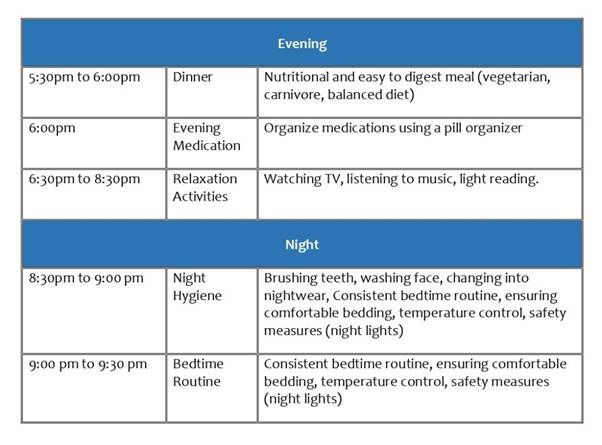 • दिन: संतुलित मील → हाइड्रेशन → छोटे ब्रेक